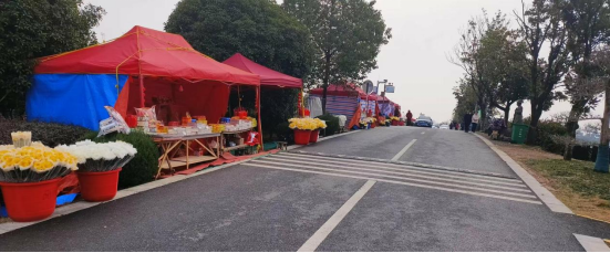 规范祭祀用品售卖点。与市监、城管等部门联合行动,整肃规范各祭扫场所周边商铺,严禁搭棚占道、拦车揽客及售卖封建迷信用品等行为。同时,为了方便市民购买祭祀用品,在万金陵园周边及园内规范设置临时售卖点,为周边村民免费提供摊位,既可为村民提供增收渠道,又便于市民采购。