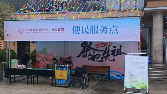 设立便民服务点。在白鹤山殡仪馆、万金陵园等殡葬服务场所设立便民服务点,为群众提供生活物资、医疗物品和雨具、轮椅等共享用品,全方位为群众提供志愿服务。