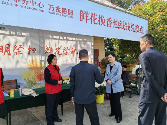调研组一行先后前往主要交通卡口、便民服务点、业务大厅、鲜花祭品兑换点等区域,详细了解交通疏导、值班值守、便民服务、文明祭扫等情况,询问殡葬服务收费及应对祭扫服务高峰各项措施落实情况。