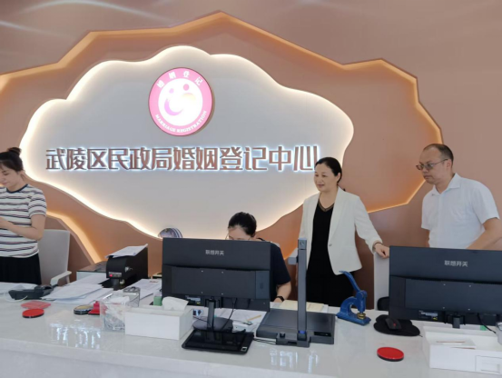 为适应新时代婚姻家庭服务需求及婚姻登记“全国通办”工作要求,全市民政系统加强婚登机构建设,推进婚登服务提质增效,着力打造5A级婚姻登记处,为适龄青年提供婚恋、婚登、婚育等多元化服务,传播新时代婚恋观、家庭观。上半年,全市结婚登记9433对,同比增加275对,其中武陵区民政局婚姻登记中心登记1985对,同比上升30%。