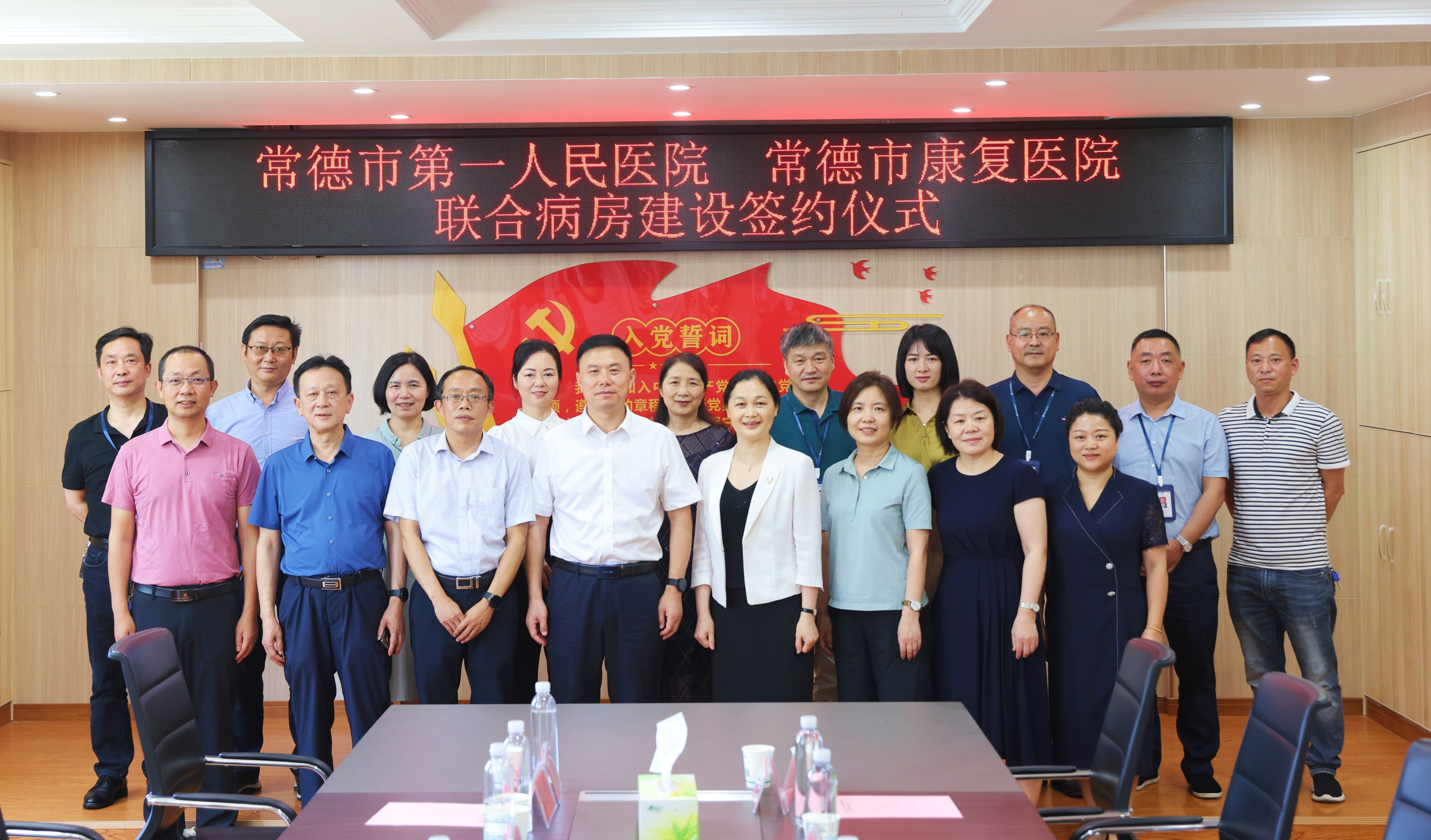 6月15日,常德市第一人民医院与常德市康复医院联合病房建设签约仪式举行。市第一人民医院党委书记向勇志、院长邓志明参加签约仪式,亚洲博彩平台推荐 党组书记、局长杨文惠,市卫健委党组成员、副主任屈贵顺出席仪式并讲话。