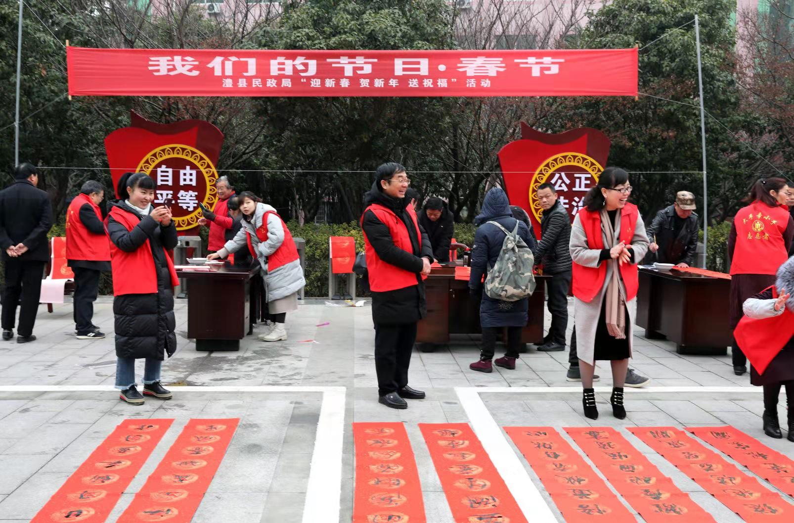 2020年春节来临之际,为营造喜庆祥和的节日气氛,宣扬中华传统民俗文化,1月19日上午,澧县民政局组织开展了“我们的节日·春节”—迎新春、贺新年、送祝福活动,邀请澧县本土书法家现场写春联,免费送春联,澧县民政局书法兴趣小组及志愿者全程参与。