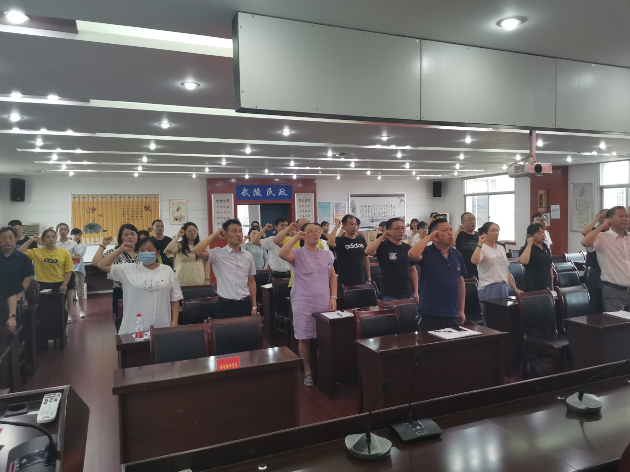 6月29日下午,在中国共产党建党日来临之际,为庆祝建党99周年,武陵区民政局组织全体党员,在局机关6楼大会议室开展了主题党日活动。