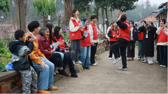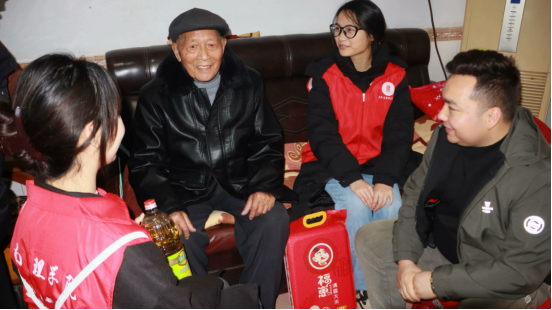 在孤寡老人易奶奶家中,志愿者们不仅送上物资,还为她表演了简单的节目,欢声笑语回荡在屋内,让易奶奶脸上洋溢出幸福的笑容。