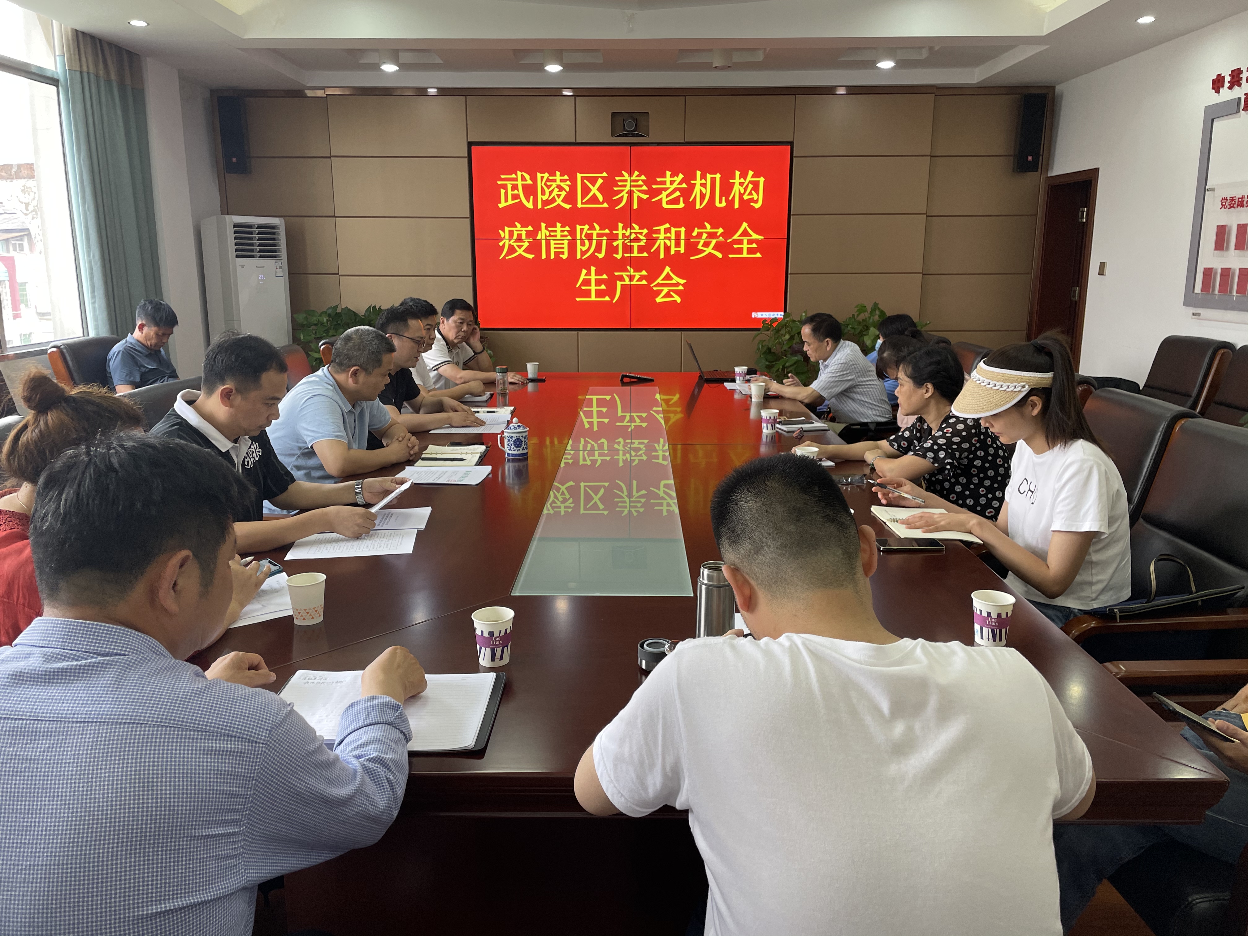 端午节来临之际,为了强化疫情防控和安全生产工作,确保养老机构安全有序运行,6月2日,区民政局养老服务股组织全区12家养老机构召开疫情防控和安全生产会,传达学习湖南省应对新冠肺炎疫情联防联控机制疫情防控组关于切实做好新冠肺炎疫情防控有关工作通知的指示精神、武陵区2021年“安全生产月”和“安全生产武陵行”活动方案,安排部署当前养老机构疫情防控和安全生产工作。区民政局副局长张喜军同志,养老服务股全体成员,区12家养老机构主要负责人参会。