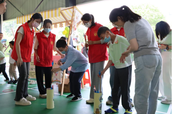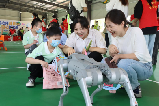 活动以充满挑战与乐趣的“欢乐大闯关”形式巧妙串联起各个主题摊位,将传统文化与现代元素进行结合,为孩子们打开了一扇通往奇妙世界的大门。走进“手工区”,一股淡淡的艾草香气扑鼻而来,在志愿者耐心细致的指导和陪伴下,孩子们认真地缝制艾草香囊。来到“游戏乐园”,套圈“钓粽子”、投壶竞技等传统游戏项目,让孩子们兴奋不已,每一次成功的投掷都伴随着大家的阵阵喝彩。AI机器狗互动环节成为了孩子们的最爱,在孩子们的注视下机器狗做出各种可爱的动作,时而跳跃,时而翻滚,引得孩子们看得目不转睛,阵阵惊叹。而在“爱心加油站”,近百张写满儿童心愿的卡片搭建起了一座孩子们与志愿者“心连心”的桥梁。志愿者们在现场积极认领了“微心愿”,承诺会努力帮助孩子们实现愿望,让爱蔓延。