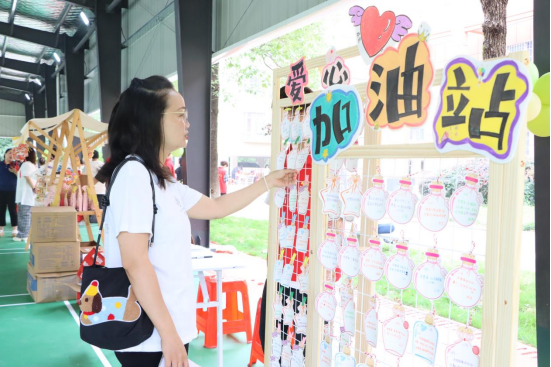 特别设计的“阳光店长”摊位,无疑是本次活动的一大亮点。孩子们摇身一变,成为了自信满满的“小老板”。他们将自己亲手制作的手工制品整齐地摆放在摊位上,有色彩斑斓的绘画作品、精致小巧的手工饰品,还有充满创意的纸艺作品。从最初的小声嘟囔到后来的自信大方,孩子们不仅提升与他人沟通交流的能力,更体会到了通过自己的努力获得成果的喜悦。