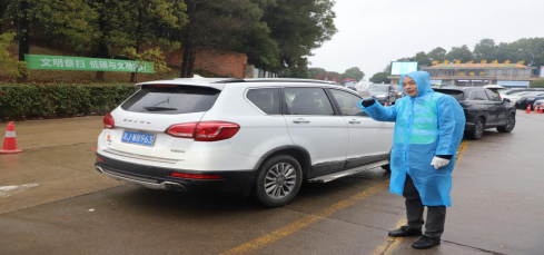 志愿者引导车辆有序入园