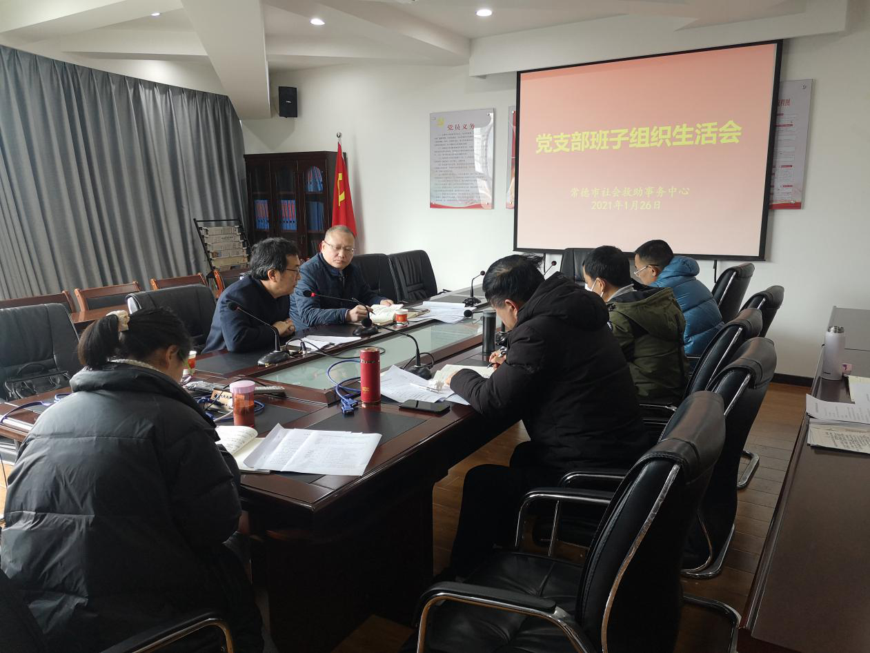 根据中共常德市委组织部关于召开2020年度基层党组织组织生活会的相关要求,1月26日上午,市社会救助事务中心召开2020年度党支部班子组织生活会。市纪委监委驻人社局纪检组贾湘平同志列席指导,市社会救助事务中心支部书记、主任卞德荣同志主持会议。