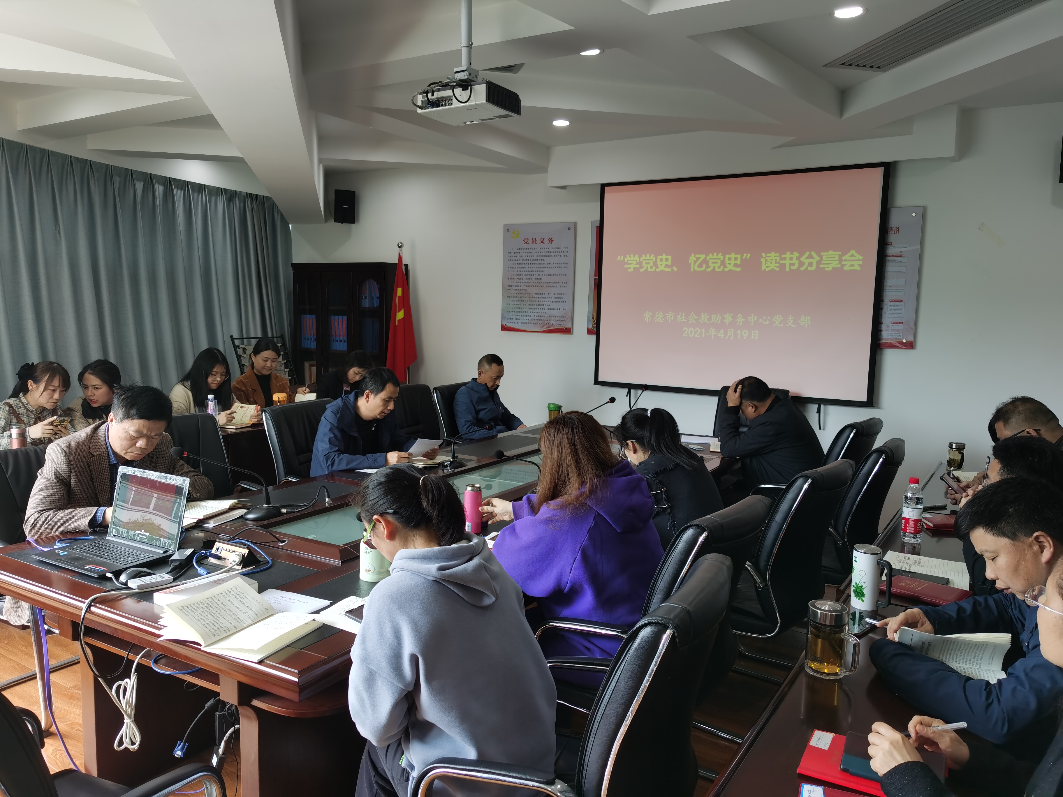 为推动党史学习教育走深走细、入脑入心,4月19日下午,市社会救助事务中心全体干部职工齐聚党员活动室开展“学党史、忆党史”读书分享会活动,对近期所读《中国共产党简史》感悟进行分享交流。