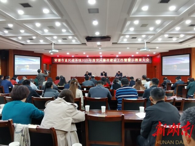 湖南日报·新湖南客户端4月28日讯(莫婷 李燕喜)4月28日,常德市直民政系统召开2021年度党风廉政建设工作暨警示教育大会,深入学习贯彻党的十九届五中全会精神,加强民政系统全面从严治党和党风廉政建设工作。党组书记现场上廉政党课,为120余名干部职工集中进行思想“充电”精神“补钙”。