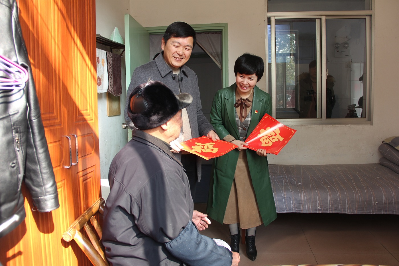领导们与老人、孩子们围桌而坐,大厅里洋溢着欢乐的气氛,大家个个脸上都洋溢着喜悦的笑容,老人们激动地说:“我们在这里吃得好,住得好,还能和领导们一起吃年饭,真是太感谢党和政府了。”
