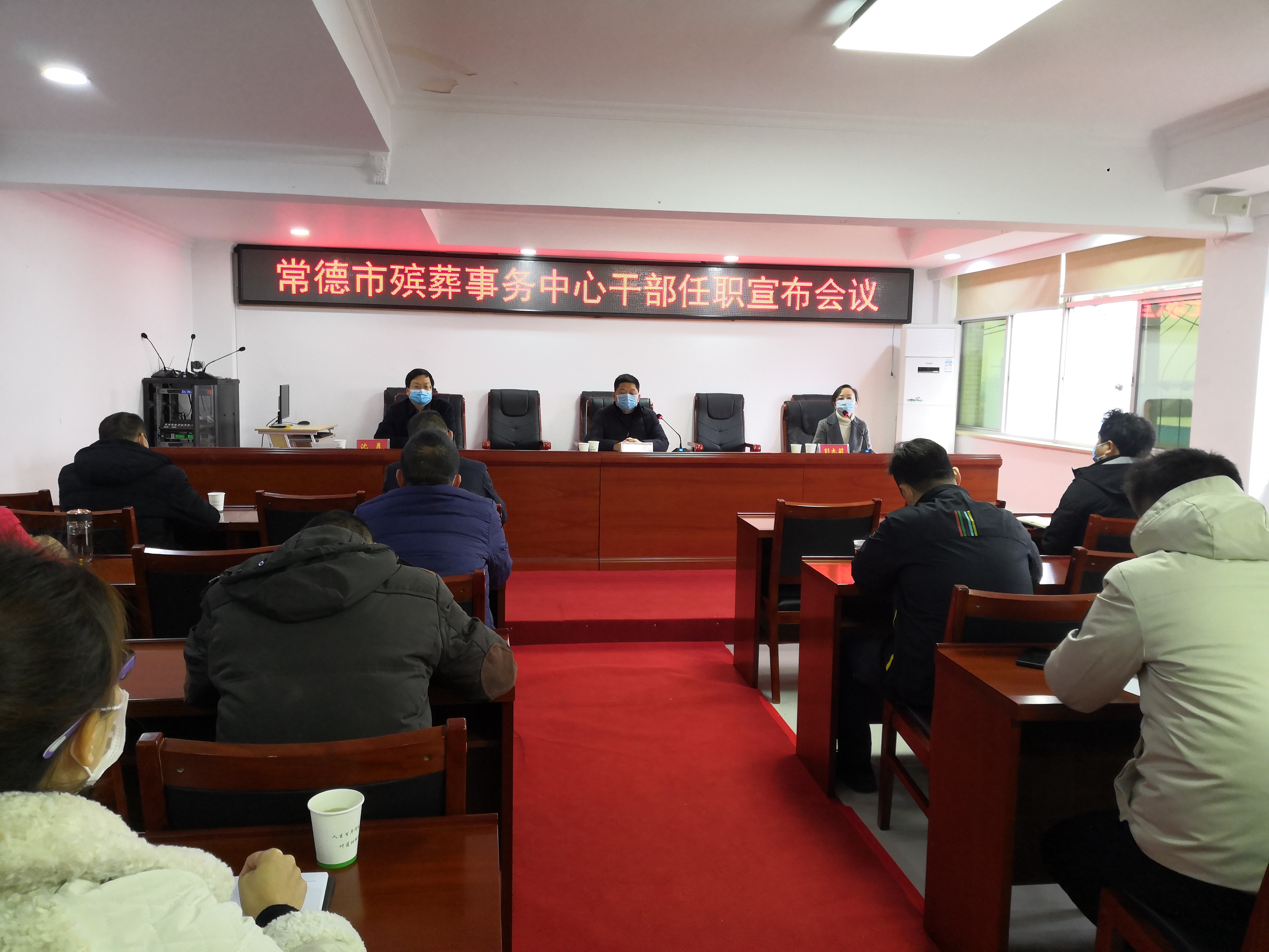 3月5日,常德市殡葬事务中心召开干部任职宣布会议,亚洲博彩平台推荐 党组副书记、副局长殷宗仁,党组成员、工会主席彭志莉、人事科长王曲和中心干部职工参加了会议。