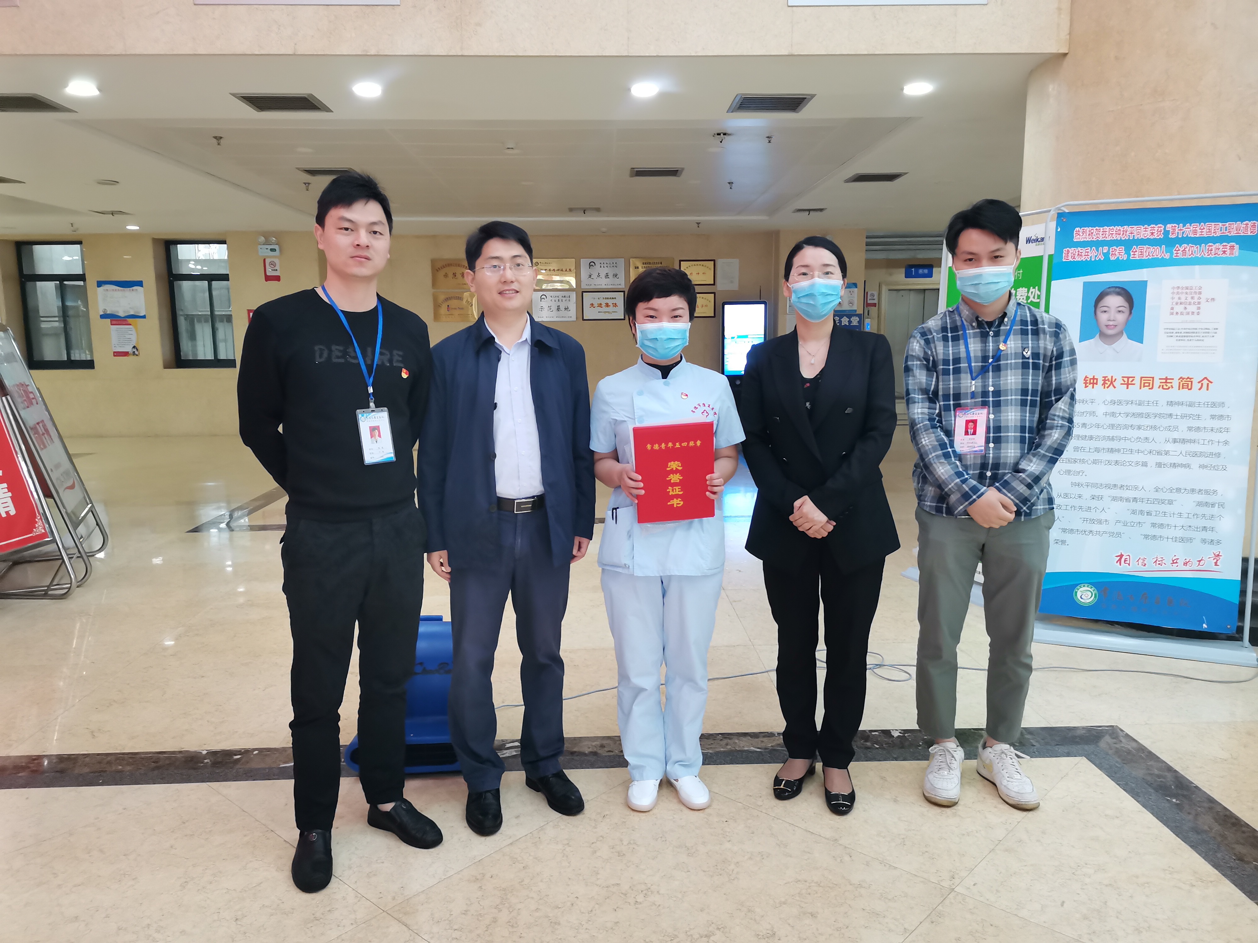 共青团常德市委、常德市青年联合会授予市康复医院吴亚丽同志“常德青年五四奖章” 来源:常德市康复医院 2020-05-18 11:36 字体:【小 大】 4月23日,共青团常德市委、常德市青年联合会印发《关于授予丁志敏等49位同志“常德青年五四奖章”、武陵女子民兵志愿宣讲队等25个集体“常德青年五四奖章集体”的决定》(常团联〔2020〕5号),市康复医院精神科女病室护士长吴亚丽同志被授予“常德青年五四奖章”称号。为吴亚丽同志颁发荣誉证书和奖章5月14日上午,共青团常德市委常委、宣传部部长何佩霓一行专程来院为吴亚丽同志颁发荣誉证书和奖章,办公室主任兼团总支书记陈青、团总支副书记曾训能、人事科干事陈星参加。(市康复医院供稿) 相关内容