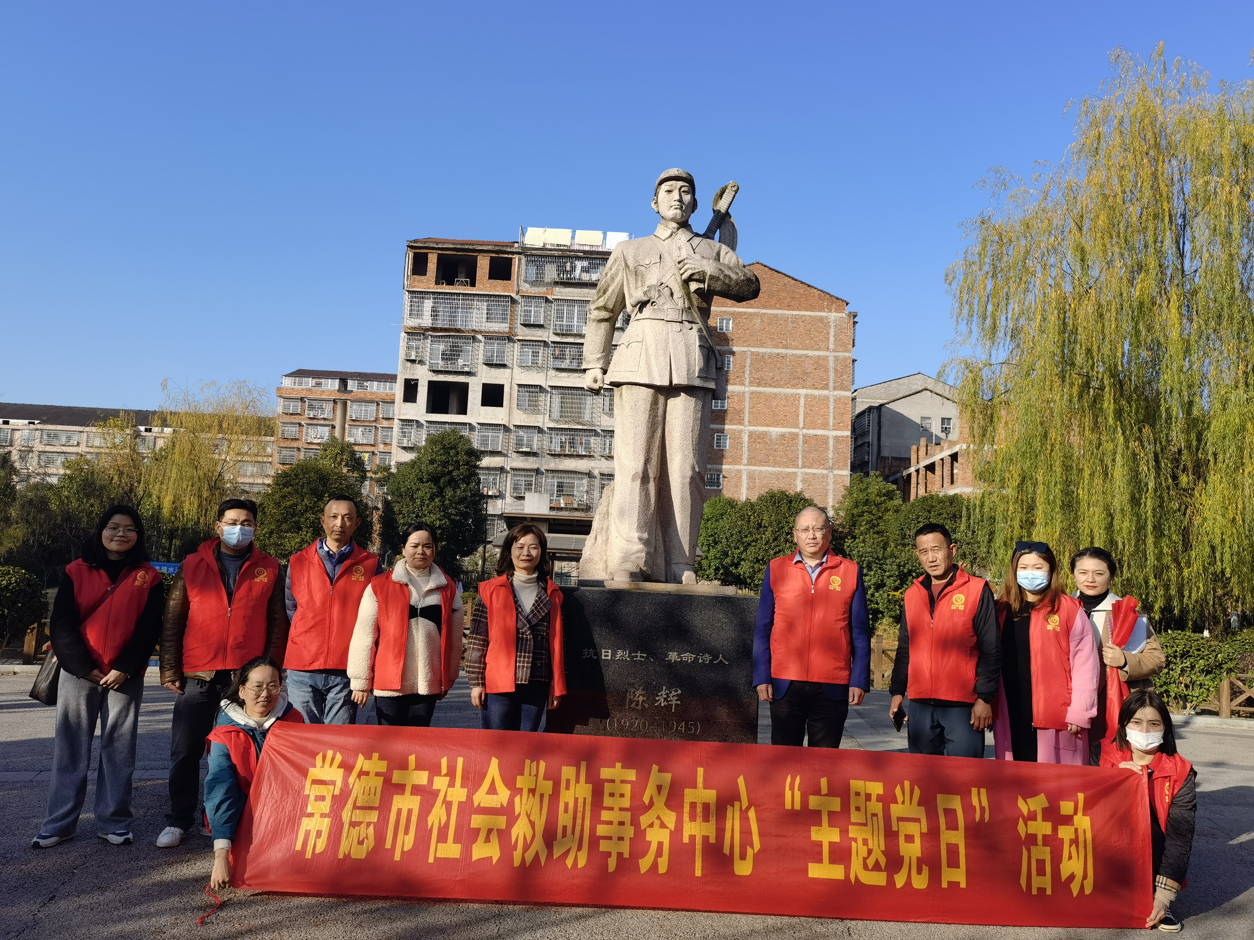 为进一步深化党史学习教育,继承光荣革命传统,弘扬爱国主义精神,市社会救助事务中心于12月22日结合“寒冬送温暖”专项行动,前往鼎城区迎宾社区开展“缅怀革命先烈 传承红色精神”暨“寒冬送温暖”主题党日活动。